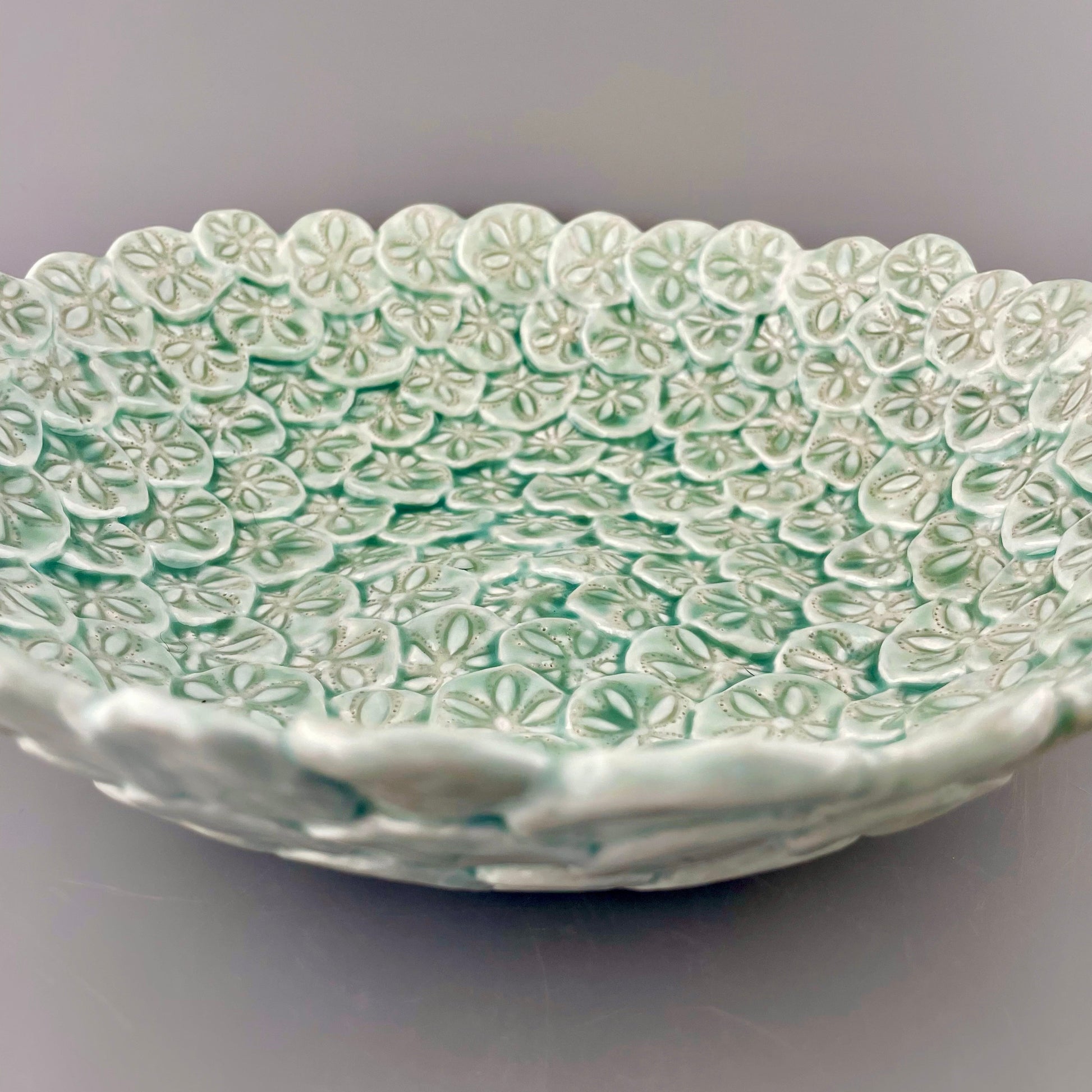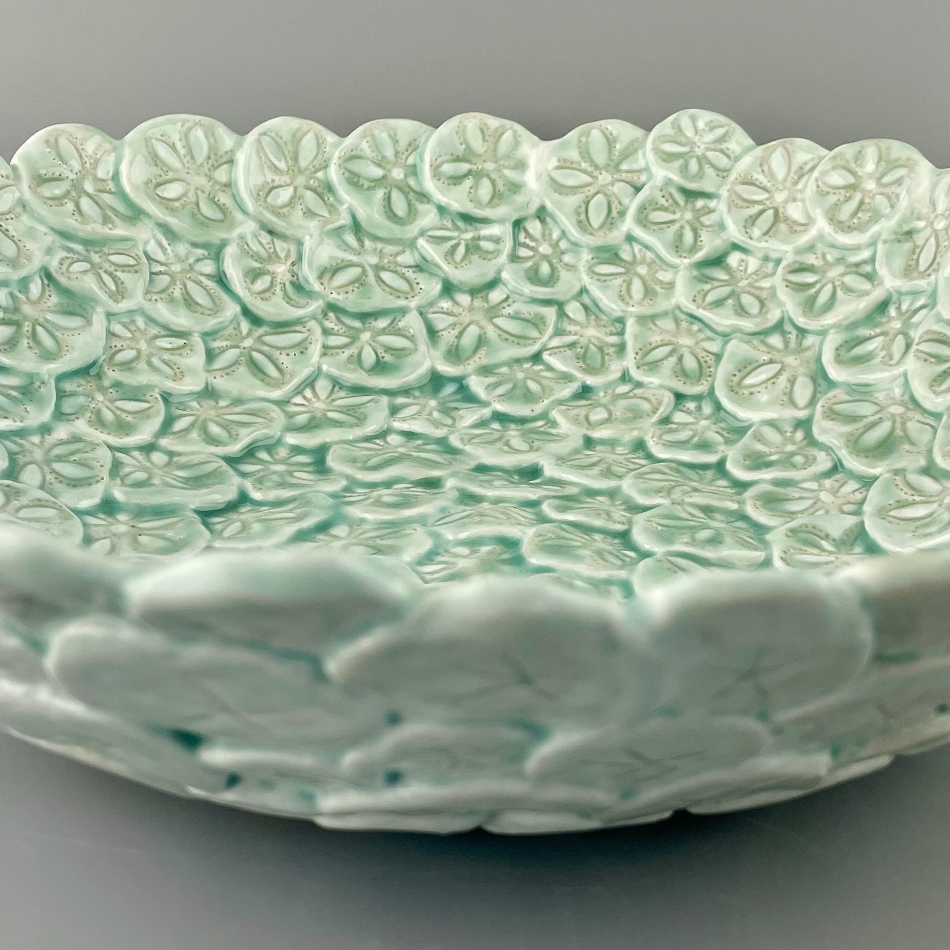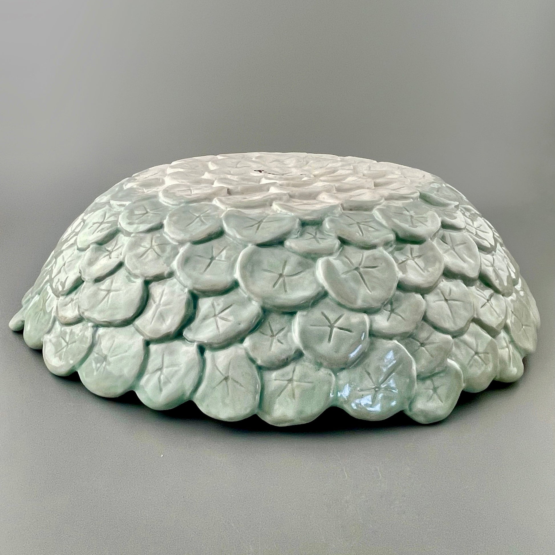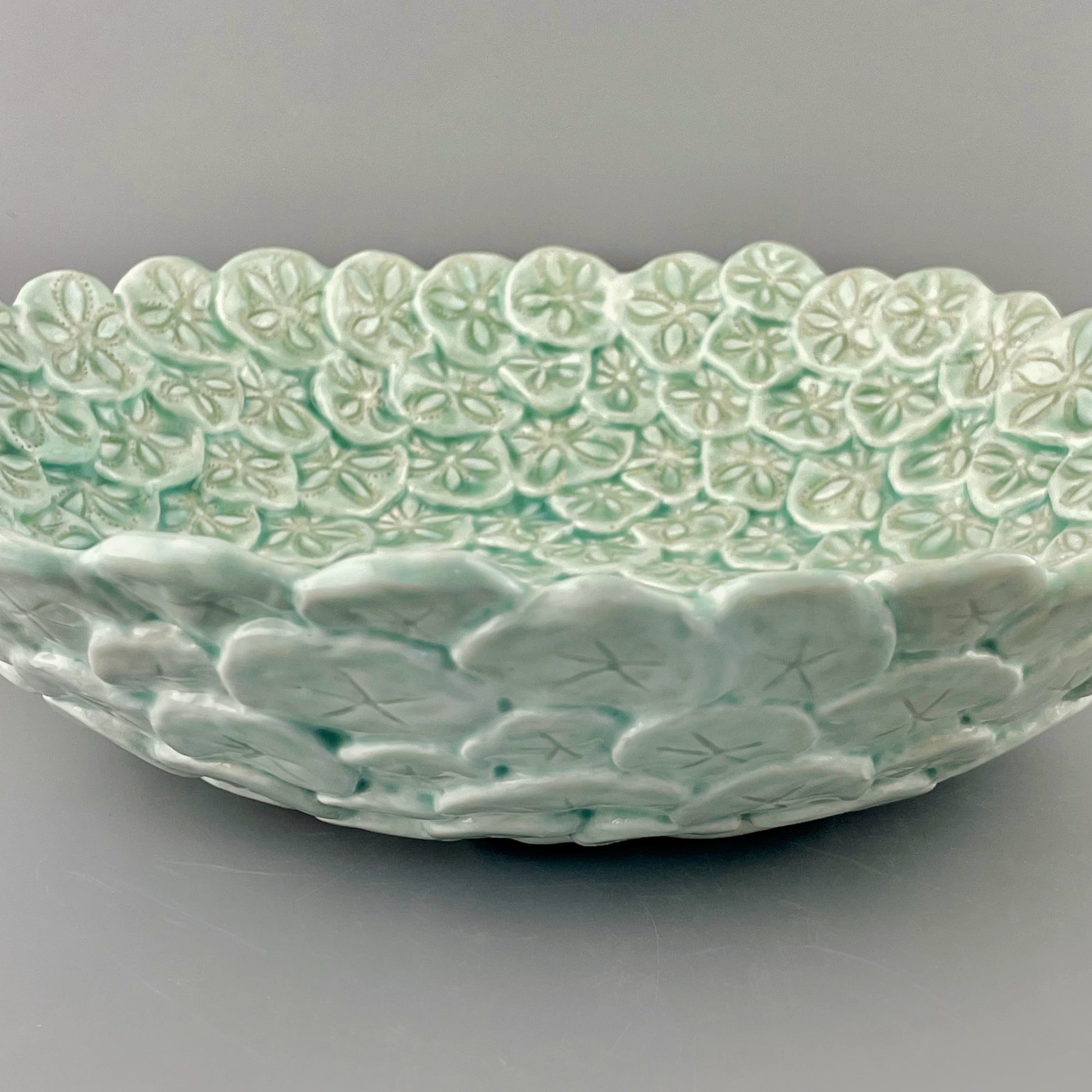 Celadon glazed porcelain bowl, hand-sculpted and carved.